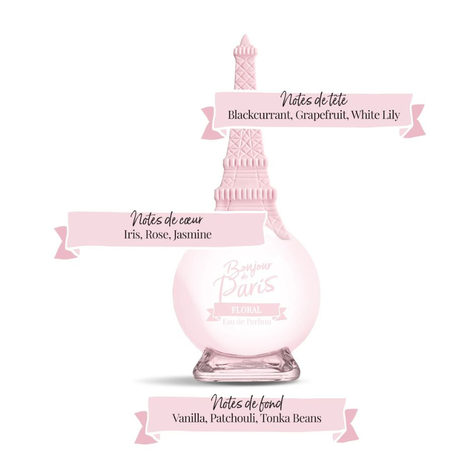 Step into the heart of Paris with Bonjour de Paris, a floral fragrance that captures the soul of the City of Light. Made in France and crowned with an iconic cap sculpted in the shape of the Eiffel Tower, this perfume is more than a scent—it's a statement of elegance, romance, and refined artistry.